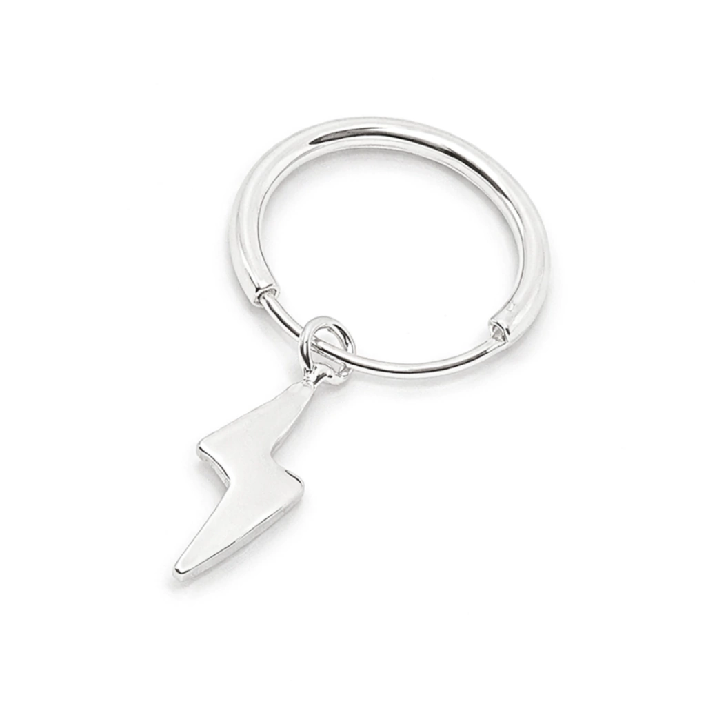Aro de plata 925 color plateado con dije en forma de rayo, un diseño moderno y con personalidad que suma un toque original a cualquier look. Su estilo minimalista los hace ideales para el uso diario o para combinar con otros aros.